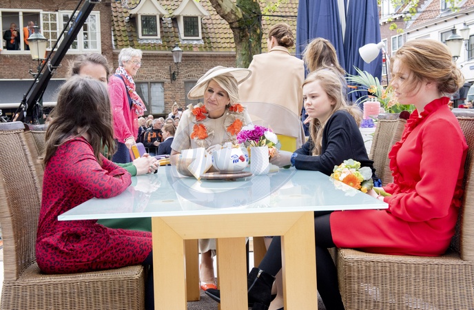 Holenderski Krol z zona i corkami podczas Kings Day Celebrations