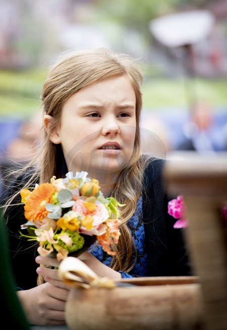 Holenderski Krol z zona i corkami podczas Kings Day Celebrations