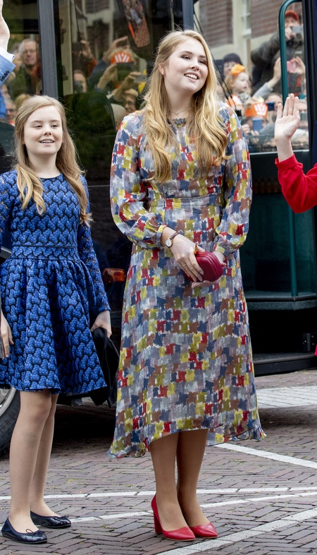 Holenderski Krol z zona i corkami podczas Kings Day Celebrations
