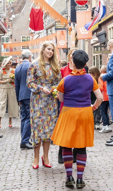Holenderski Krol z zona i corkami podczas Kings Day Celebrations
