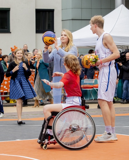 Holenderski Krol z zona i corkami podczas Kings Day Celebrations