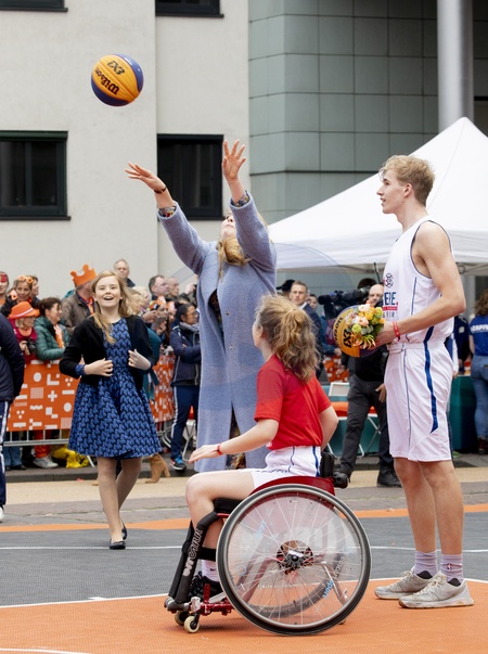 Holenderski Krol z zona i corkami podczas Kings Day Celebrations