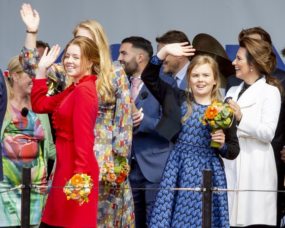 Holenderski Krol z zona i corkami podczas Kings Day Celebrations