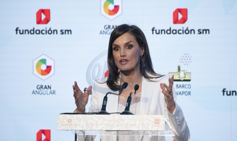 Krolowa Letizia bialej marynarce na wreczeniu nagrod 'El Barco de Vapor