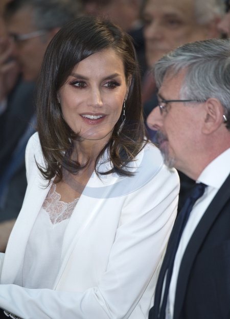Krolowa Letizia bialej marynarce na wreczeniu nagrod 'El Barco de Vapor