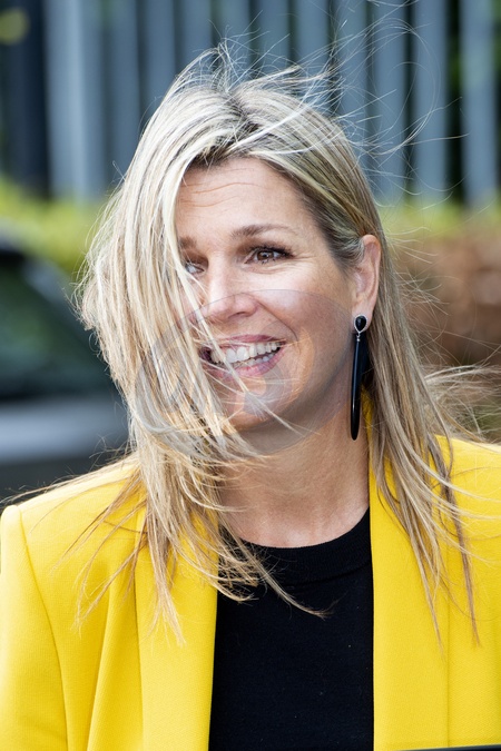 Krolowa Maxima w zoltym garniturze