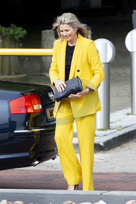 Krolowa Maxima w zoltym garniturze