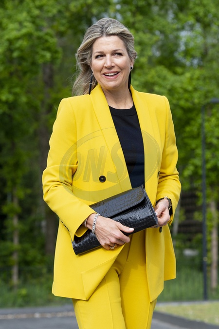 Krolowa Maxima w zoltym garniturze