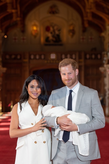 Ksiaze Harry i ksiezna Meghan z dzieckiem