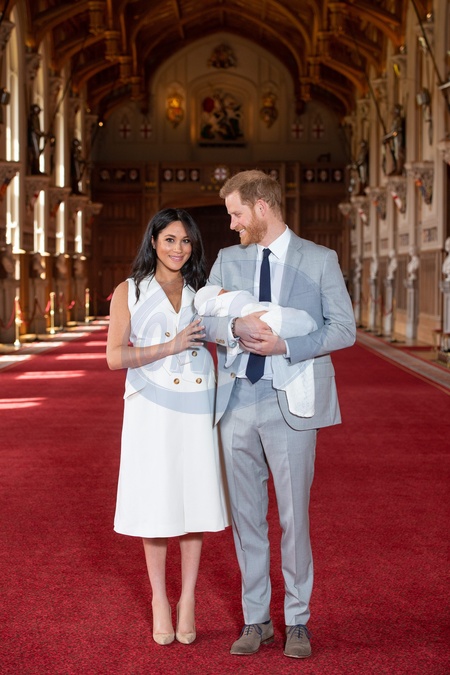 Ksiaze Harry i ksiezna Meghan z dzieckiem