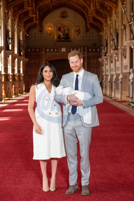 Ksiaze Harry i ksiezna Meghan z dzieckiem