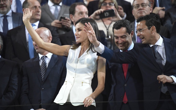 Krolowa Letizia w bialej kamizelce na finale meczu 'Queens Cup' women football