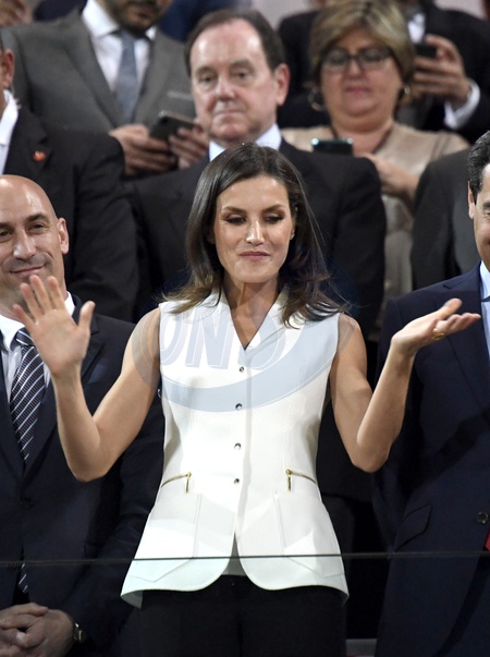 Krolowa Letizia w bialej kamizelce na finale meczu 'Queens Cup' women football
