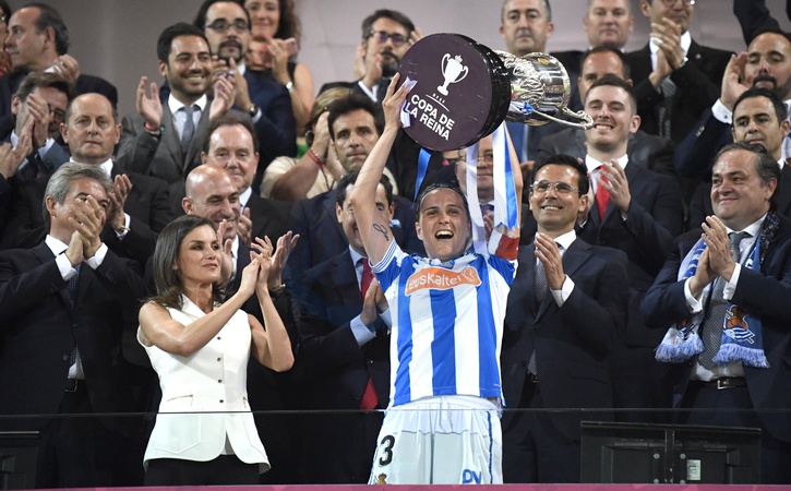 Krolowa Letizia w bialej kamizelce na finale meczu 'Queens Cup' women football