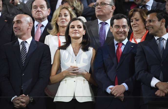 Krolowa Letizia w bialej kamizelce na finale meczu 'Queens Cup' women football