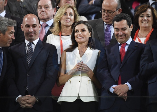 Krolowa Letizia w bialej kamizelce na finale meczu 'Queens Cup' women football
