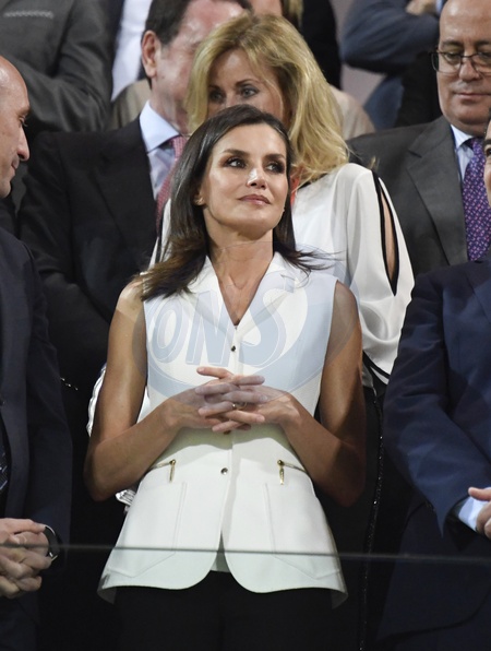 Krolowa Letizia w bialej kamizelce na finale meczu 'Queens Cup' women football
