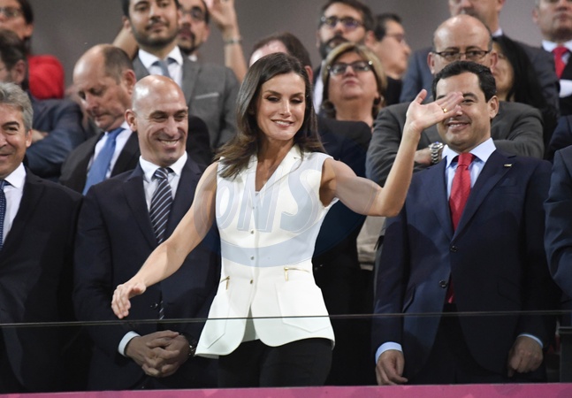 Krolowa Letizia w bialej kamizelce na finale meczu 'Queens Cup' women football