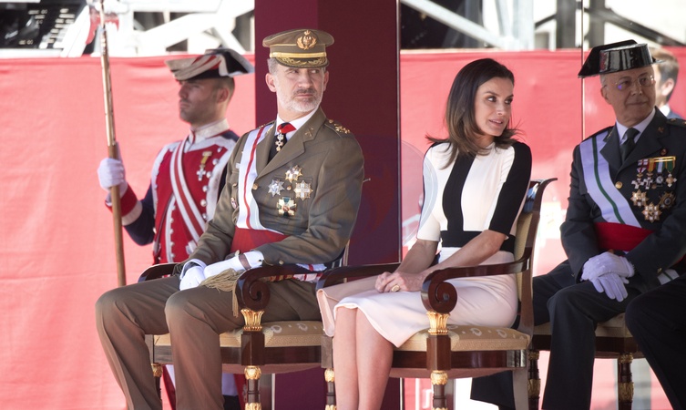 Elegancka krolowa Letizia z mezem podczas Guardia Civil 175th Anniversary
