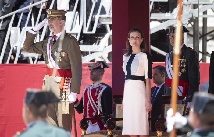 Elegancka krolowa Letizia z mezem podczas Guardia Civil 175th Anniversary