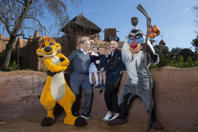 Ksiaze Albert z zona i dziecmi w Disneylandzie