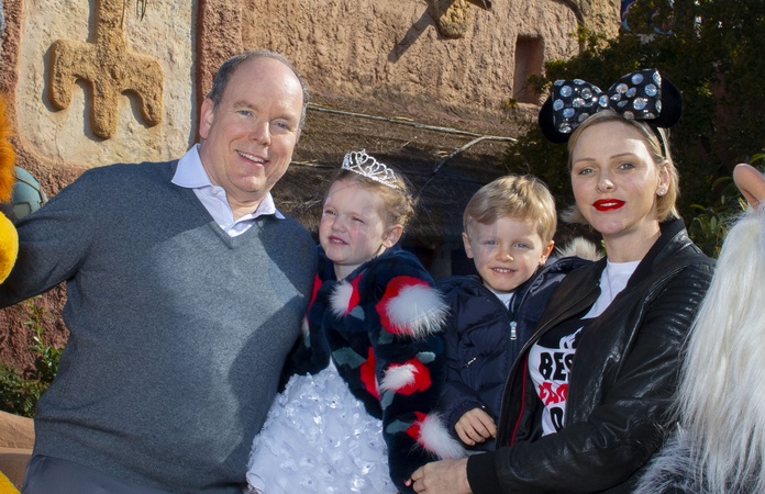 Ksiaze Albert z zona i dziecmi w Disneylandzie