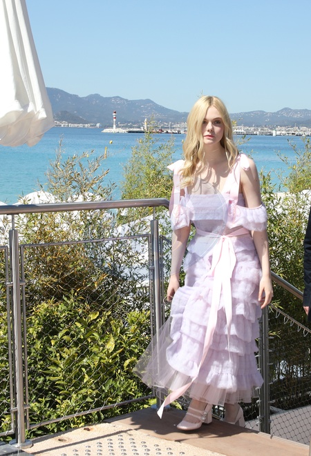 CANNES - Elle Fanning w jasnorozowej sukni z falbanami