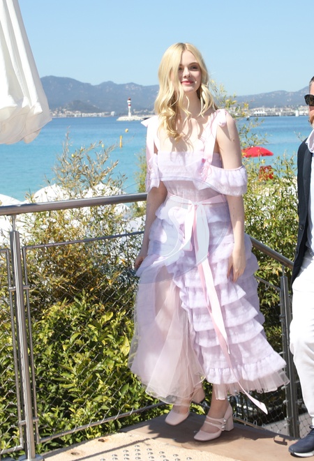 CANNES - Elle Fanning w jasnorozowej sukni z falbanami