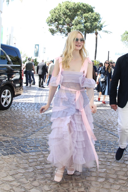 CANNES - Elle Fanning w jasnorozowej sukni z falbanami