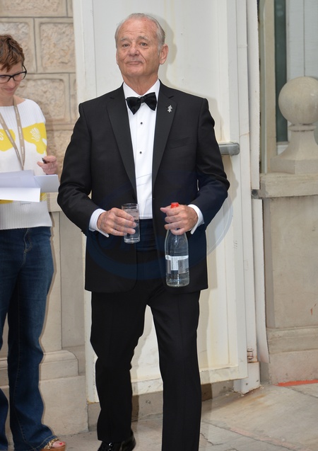 Cannes - Bill Murray ze szklanka i z butelka wody wita sie z mala dziewczynka