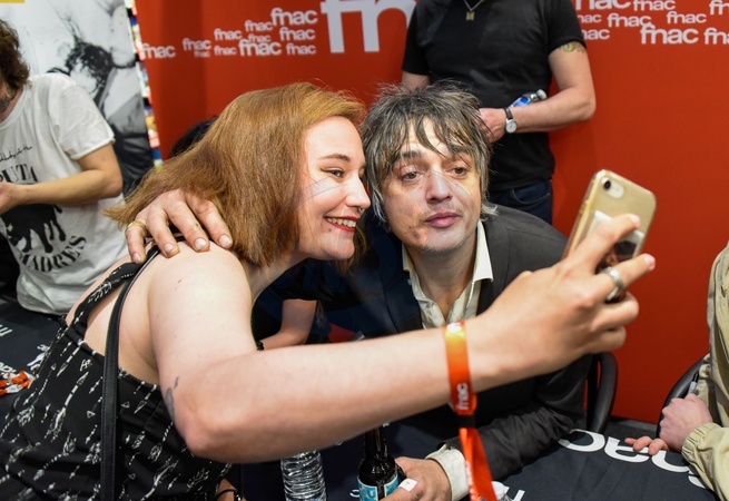 Pete Doherty z psami, otwiera butelki zebami na spotkaniu z fanami we Fnac