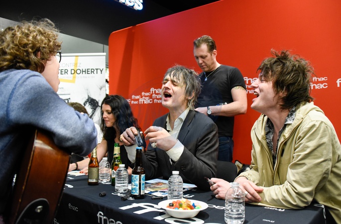 Pete Doherty z psami, otwiera butelki zebami na spotkaniu z fanami we Fnac