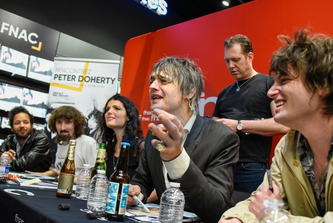 Pete Doherty z psami, otwiera butelki zebami na spotkaniu z fanami we Fnac