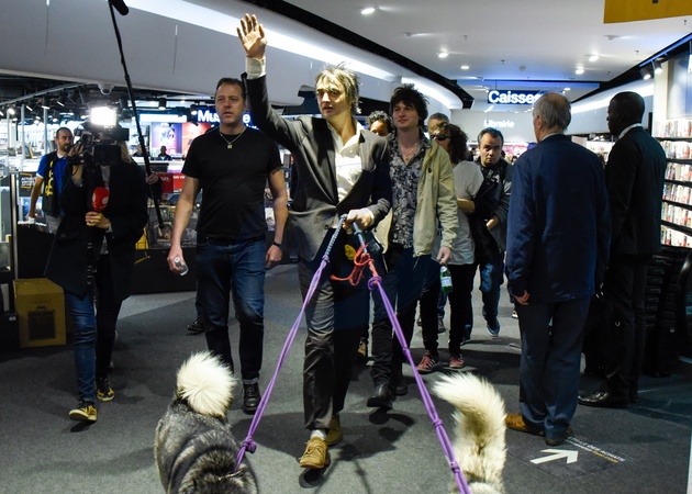Pete Doherty z psami, otwiera butelki zebami na spotkaniu z fanami we Fnac