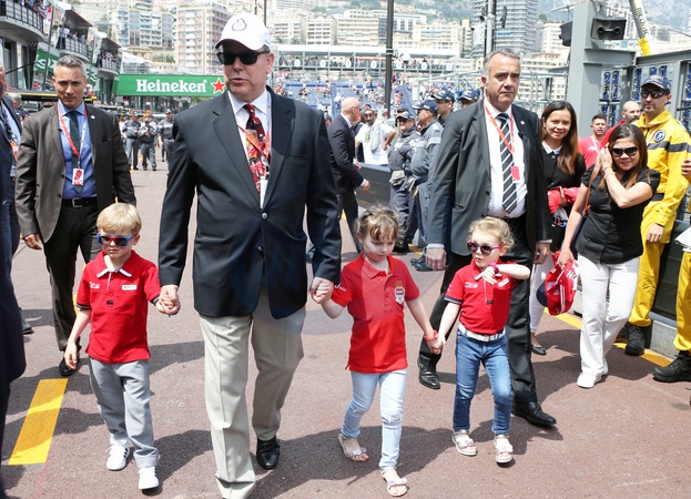 Ksiaze Albert z dziecmi na Grand Prix de Formule