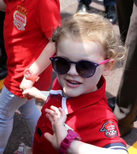 Ksiaze Albert z dziecmi na Grand Prix de Formule