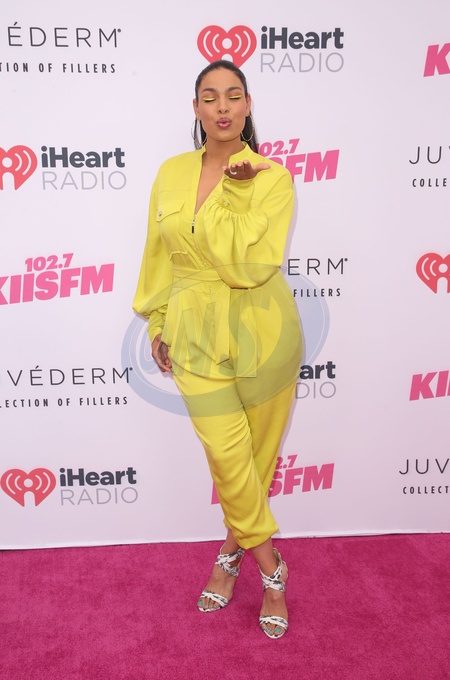 Jordin Sparks w zoltym kombinezonie na iHeartRadio Wango Tango
