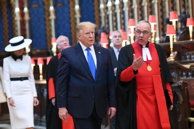 Trumpowie z corka i jej mezem zwiedzaja Westminster Abbey