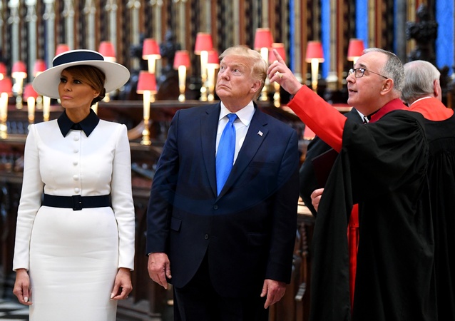Trumpowie z corka i jej mezem zwiedzaja Westminster Abbey