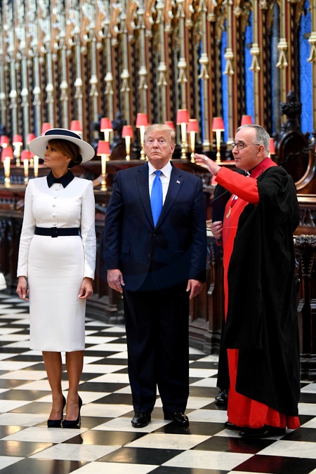 Trumpowie z corka i jej mezem zwiedzaja Westminster Abbey