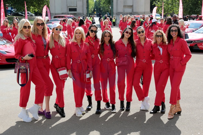 Paris Hilton w czerwonym kombinezonie na Cash & Rocket charity tour departure