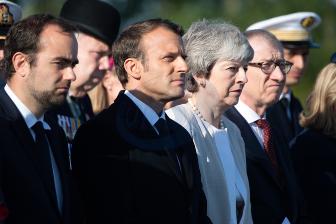 Macron i May na obchodach 75. rocznicy ladowania w Normandii