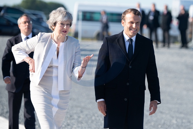 Macron i May na obchodach 75. rocznicy ladowania w Normandii