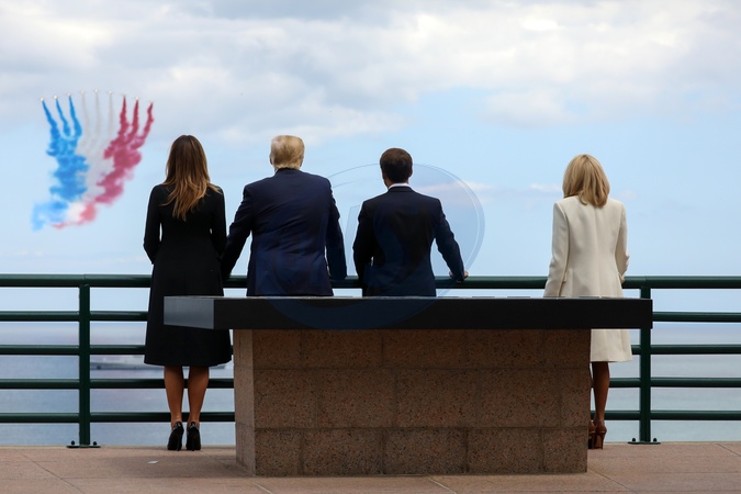 Trumpowie i Macronowie uczcili pamiec uczestnikow ladowania w Normandii