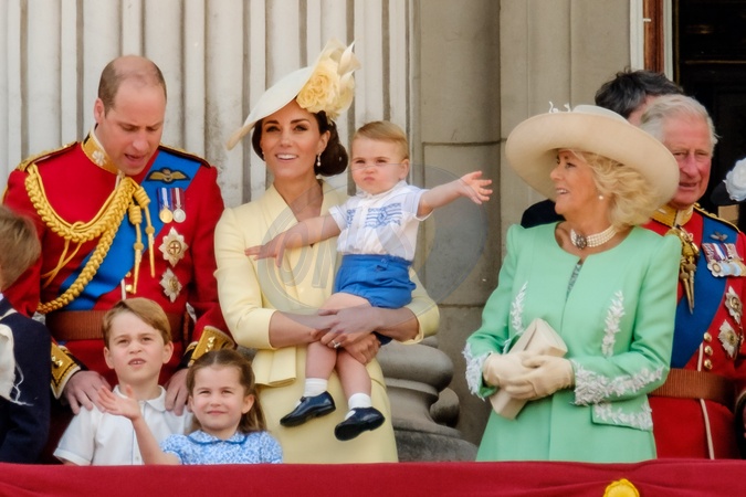 Ksiaze William, ksiezna Kate, Jerzy, Louis, ksiezniczka Charlotte, Camilla