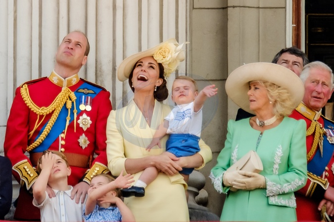 Ksiaze William, ksiezna Kate, Jerzy, Louis, ksiezniczka Charlotte, Camilla 03.jpg