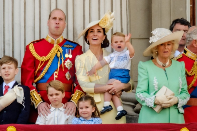 Ksiaze William, ksiezna Kate, Jerzy, Louis, ksiezniczka Charlotte, Camilla