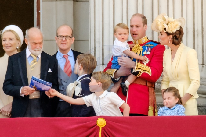 Ksiaze William, ksiezna Kate, Jerzy, Louis, ksiezniczka Charlotte, Ksiaze i Ksiezna Michael