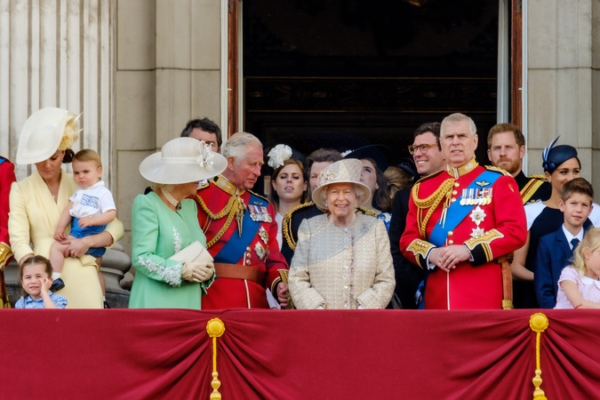 Ksiezna Kate, Louis, ksiezniczka Charlotte, Camilla, Karol, Anna, krolowa Elzbieta, Andrzej, Beatrice01.jpg