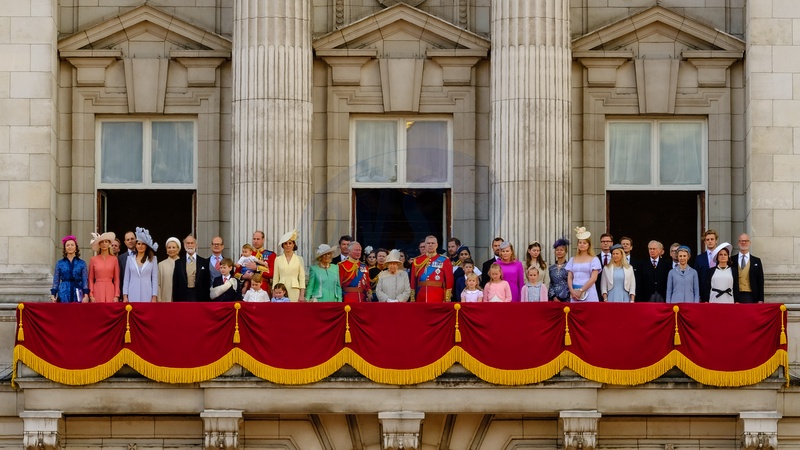 Ksiaze i Ksiezna Michael, William, Kate, Jerzy, Louis, ksiezniczka Charlotte, Camilla, Karol, Anna, krolowa Elzbieta, Andrzej, Harry, Meghan